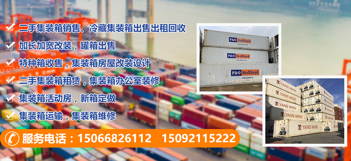 主營:二手集裝箱銷售、冷藏集裝箱出售出租回收、加長加寬改裝,罐箱出售,特種箱收售,集裝箱房屋改裝設計,二手集裝箱租賃,集裝箱辦公室裝修,集裝箱活動...